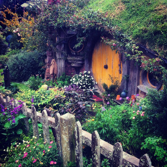 -Hobbiton- as a huge Lord of the Rings fan, I have wanted to visit the Shire since I first fell in love with it between the pages of the Hobbit years ago. How could you not with it's charming hills filled with happy go lucky inhabitants? I wanted to visit New Zealand as soon as I discovered that the movie was filmed in the rolling hills in the North. After a few hours drive from Auckland, the landscape was increasingly becoming more scenic and the excitement was palatable with the other geeks on the bus who passed the time quizzing each other on LOTR facts and trying to remember the names of all the dwarves on the initial expedition. When we finally made it, we all switched from the tour bus to a small shuttle that delivered us to the gate of Hobbiton. It far exceeded my expectations for a movie set! There is a dedicated staff that maintains the little village and all of the hobbit holes including the little flower and vegetable gardens throughout the Shire. It legitimately felt like Hobbits lived there as we walked around door to small door.